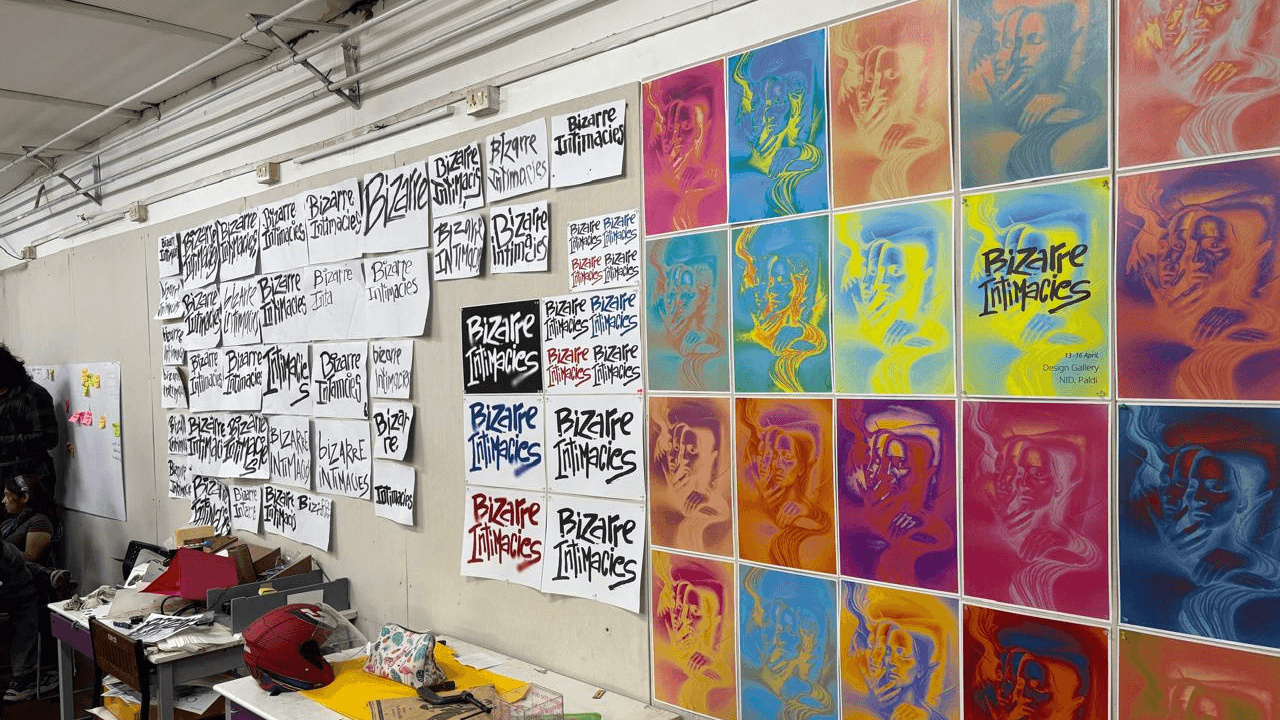 Bizarre Intimacies was an exhibition by Spacebar as part of their Design Project. The concept for it was to be a space of unravelling where the personal and the collective blur, where the self is no longer static, but ever-changing. Where fragments of the familiar echo back to the visitors in unfamiliar ways, asking them to reconsider what truly belongs to them. As part of the Graphics team for the same, I worked on the identity, custom display font, motion graphics, spatial collaterals etc.